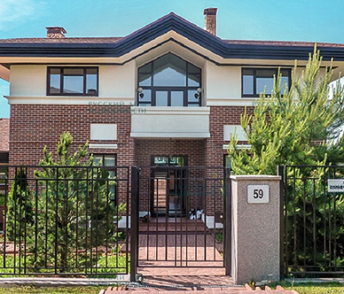 Дом без внутренней отделки, фундамент бетонная плита, стены кирпич, окна стеклопакеты. Электричество, вода и канализация заведены в дом. Эл. мощность 15 ква. Газ по границе участка. Крыша мягкая кровля. Фасад утеплен, оштукатурен и окрашен согласно архитектурного проекта. Перила балконов и окон - нержавеющая сталь. Выполнено фасадное ограждение участка - декоративный забор из крашеной металлической профильной трубы.